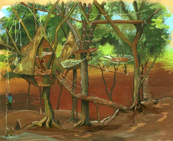 Réunir un groupe de gens qui construirait dans un milieu naturel fort (climat contrasté, relief accidenté, faune et flore sauvage, forêt…) une véritable " cité de cabanes " : un lieu de vie expérimental à l'échelle d'un petit village dont les habitations s'aménageraient en étroite relation avec le milieu naturel, dans un souci écologique, sur le principe de la cabane (utilisation des matériaux naturels et des caractéristiques du site). Les cabanes s'installeraient sous terre, au sol, dans les arbres ou accrochées à une falaise et tireraient parti des caractéristiques de chaque endroit (sous terre : isolation... en hauteur : lumière, vent, pluie...)