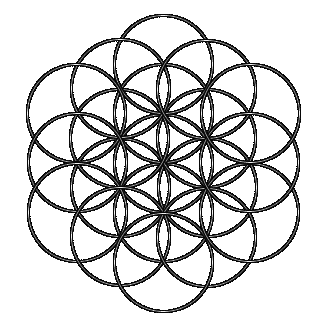 Pour l'ensemble de la vallée, j'ai suivi les enseignements d'un amérindien : à partir du plus vieux et gros châtaigner, j'ai dessiné un réseau de cercles de 7 mètres de diamètres, placés en hexagones. Certains auteurs appellent ce motif la fleur de vie.