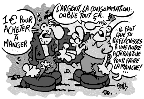 persister comme incitateurs... On peut douter que le super-pouvoir des multinationales disparaisse petit à petit, faute de clients... Vous avez parlé de pédagogie des catastrophes... Et la lutte des classes ? Comment regardez-vous la délinquance ? Comme une économie informelle ou comme une concurrente de l’activité capitaliste ? Propos recueillis par Nicolas Arraitz et Gilles Lucas L’informel près de chez vousDans les années 60, beaucoup d’intellectuels se tournèrent vers le tiers-monde, alors en voie de décolonisation. « Le vent d’Est [était] plus fort que le vent d’Ouest », comme le rappelle Serge Latouche. Le remplacement des colonies par une myriade d’États nationaux, certains d’obédience stalinienne, a modernisé et maintenu la tutelle des anciens maîtres, et de quelques nouveaux non moins puissants. Aujourd’hui, ce n’est donc plus la révolution qu’on y admire, mais des modes de vie regardés comme autant de résistances aux pressions modernes de la désocialisation. L’herbe était - et reste - toujours plus verte ailleurs [1]. En effet, quel regard autre qu’ethnologique trouve-t-on à propos de l’économie informelle, en Europe et en France chez les analystes et critiques, même les plus avancés dans leur déplaisir vis-à-vis du fonctionnement du monde ? Parce que de l’informel, il y en a évidemment ici aussi. À ceci près que la doxa lui prête des tares qu’elle n’attribue pas aussi systématiquement ailleurs. L’économie informelle en Europe, quand elle ne concerne pas quelque expérimentation groupusculaire, est toujours affublée des qualificatifs « criminelle », « mafieuse », « noire », etc. Ces mêmes adjectifs qu’utilisent d’ailleurs les États du Sud, en accord avec le FMI, pour parler des modes « d’auto-organisation de la vie et de la survie » qui se sont développés chez eux. L’économie informelle est toujours illégale, en Afrique comme ailleurs, pour la simple raison que les États n’en perçoivent aucune fiscalité. Son fonctionnement se déroule de fait en dehors d’une société régulée par la gestion économique d’une fausse collectivité « nationale », du mouvement frénétique de marchandises éphémères, hors des fondamentaux juridiques et de la hiérarchie officielle des pouvoirs. En France, l’économie informelle se compose de multiples activités : mise en esclavage d’une population étrangère et illégale, travail au noir... Mais dans un grand nombre de cités de banlieue, cet informel est organisé autour d’une circulation intensive de marchandises « récupérées » ou « tombées du camion », et de petits trafics en tout genre [2]. Elle permet de « vivre et survivre ». Mais il est pourtant convenu de parler exclusivement de « criminalité » et de « délinquance ». La presse se régale à ne décrire des banlieues que « tournantes », « gangs », « règlements de comptes », « incendies de voitures », etc. Ces concentrations de population à bas revenus ou en