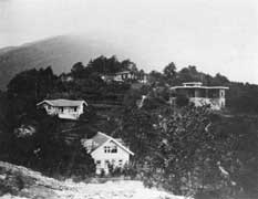 Monte Verità Gesamtansicht v.l.n.r. Casa Andrea, Casa Gentile, Haupthaus und Casa Anatta (1905 | Zentralhaus von Henri Oedenkoven erbaut | ||||