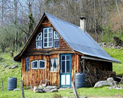 une caravane (mobil home) ou une maison en bois (ce qui ressemblerait